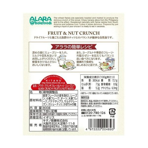 アララ クランチ フルーツ ナッツ ミューズリー 800g 1袋 オーガニック シリアル レーズン バナナ ダイエット 食物繊維 おやつ キタノ商事 イギリス 穀物 ナッツ グラノーラ お徳用 大容量 朝食 パン