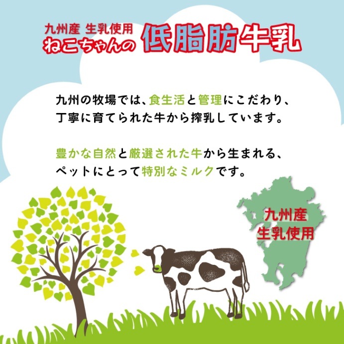 ※沖縄への配送不可。自動キャンセルとなります。●飛びつくおいしさ。九州育ちの生乳から作った愛猫用の牛乳です。