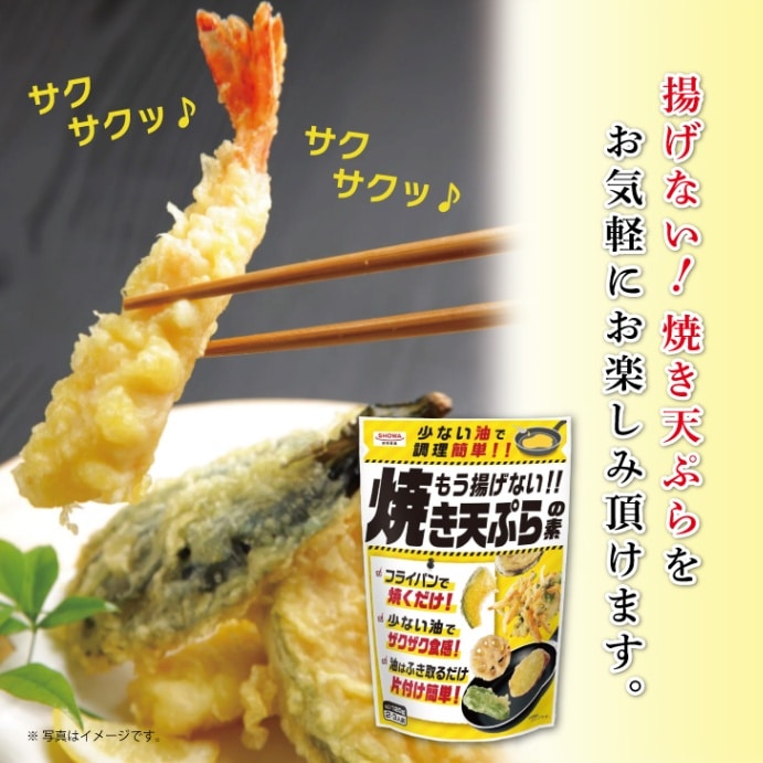 昭和産業 もう揚げない 焼き天ぷらの素 120g 天ぷら 天ぷらの素 素 天ぷら粉 てんぷら こな ザクザク食感 ザクザク 食感 手軽 揚げない 焼く 簡単 時短料理 時短 料理 アウトドア ズボラ ずぼら ズボラ料理 ずぼら料理